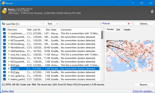 Recuva ofrece una función de sobrescritura segura que puede sobrescribir el espacio de un archivo eliminado con datos aleatorios.