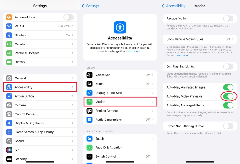 Safari:Ir aConfiguración > Accesibilidad > Movimientoy desactivarVistas previas de vídeo de reproducción automática.