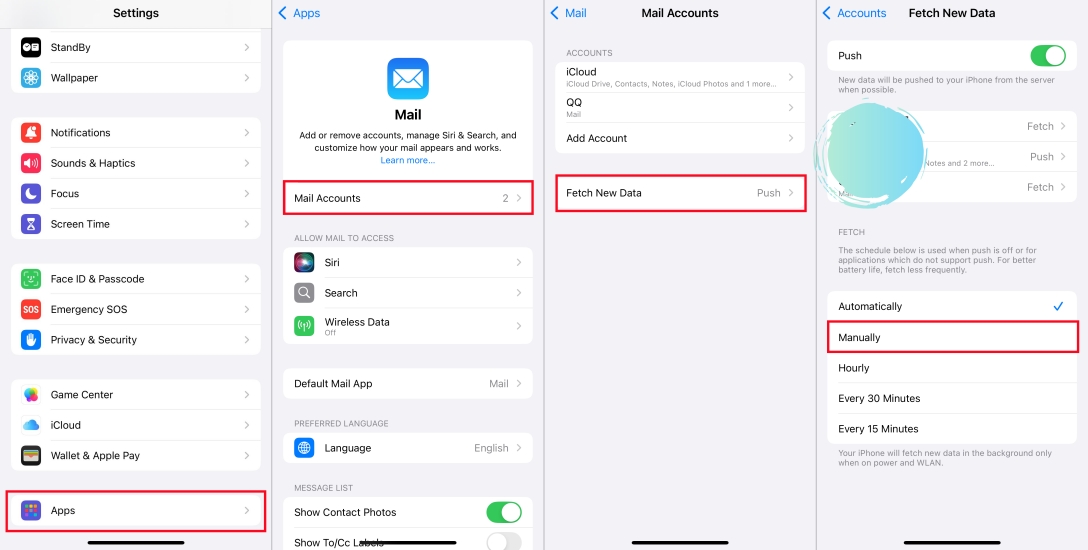 Cuando se configura en Push, la aplicación Mail busca constantemente nuevos correos electrónicos, lo que agota la batería y ralentiza el rendimiento. Intente restablecer la configuración de Correo y deshabilitar por completo las cuentas no utilizadas.