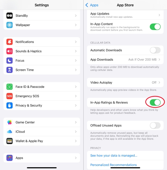 Incluso después de desactivar algunas alertas, las aplicaciones a menudo te piden que las califiques o las revises, lo que interrumpe tu flujo de trabajo. Para tener una mejor experiencia con el dispositivo, desactive las calificaciones y reseñas en la aplicación.