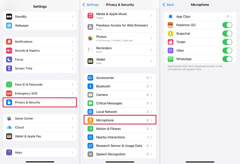 Paso 1.AbiertoConfiguración > Privacidad y seguridad > Micrófono.