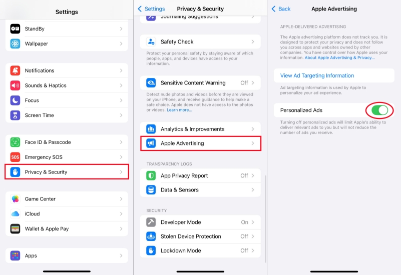 Paso 1.AbiertoConfiguración > Privacidad y seguridad > Publicidad de Apple.