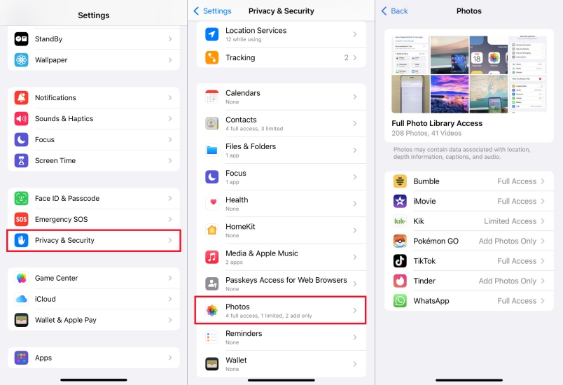 Paso 2.Revise cada categoría, como Contactos, Cámara, Micrófono y Fotos.