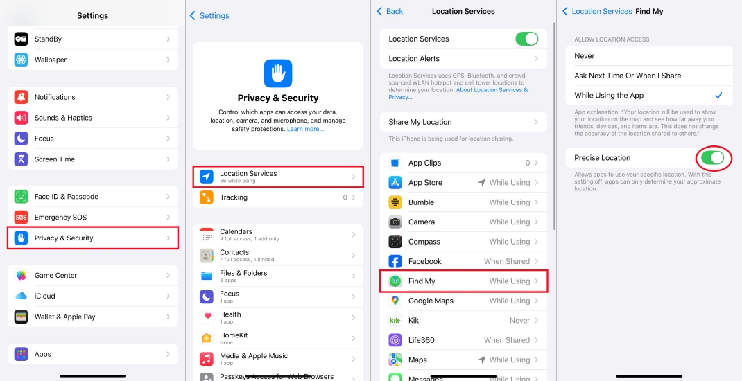 Paso 1.Ir aConfiguración > Privacidad y seguridad > Servicios de ubicación.