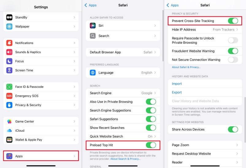Paso 1.Ir aConfiguración > Aplicaciones > Safari.