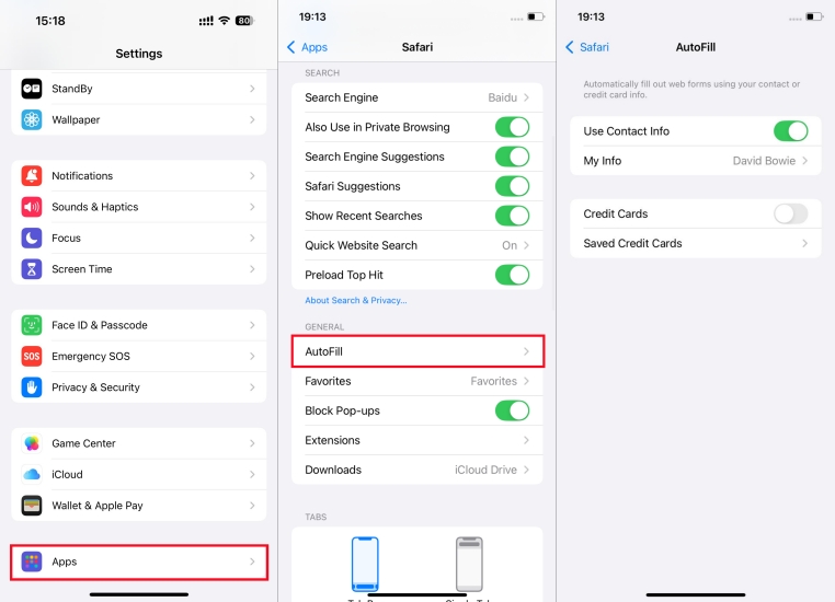 Paso 1.Ir aConfiguración > Aplicaciones > Safari > Autocompletar.