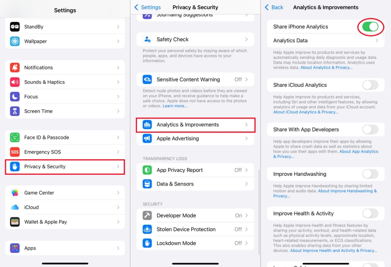 Paso 1.Ir aConfiguración > Privacidad y seguridad > Análisis y mejoras.