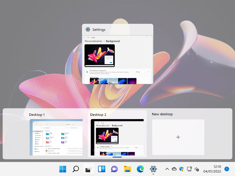 Cuando desee cambiar entre sus diferentes escritorios virtuales, tal vez durante los descansos laborales, haga clic en el ícono Vista de tareas nuevamente y luego podrá hacer clic en el escritorio al que desea cambiar. También puede cambiar directamente desde el teclado presionando el botónTecla de Windows + Ctrl + flecha izquierda/derechay cambiará automáticamente al escritorio virtual a la izquierda o derecha del actual.
