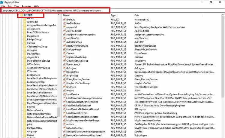 ComputadoraHKEY_LOCAL_MACHINESOFTWAREMicrosoftWindows NTCurrentVersionSvchost.