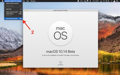 - İndirme işlemi tamamlandıktan sonra, kurulum penceresini seçerek kapatın.MacOS'u Yüklemeden ÇıkMenü çubuğundaki seçeneği veya klavye kısayolunu kullanarakKomut (⌘) + Q.