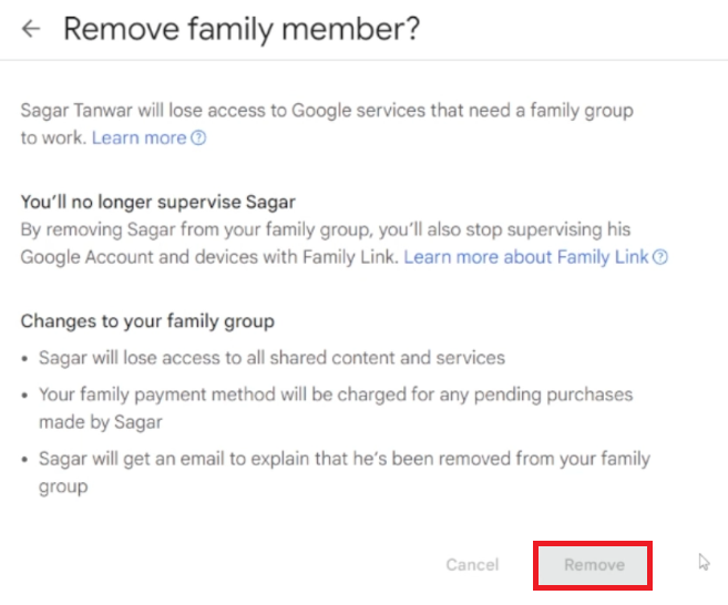 Ekranınızda onay isteyen bir bilgi istemi görünecektir. Bu, çocuğunuzun hesabının Family Link hizmetiyle olan bağlantısını kaldırma işlemine devam etmek istediğinizden emin olmak için son şansınızdır. Devam etmek için “Onayla”ya basın.